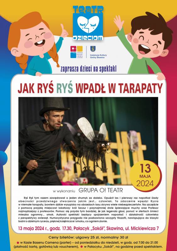 2.Teatr Dzieciom: „TARARYSIAPATY, czyli jak ryś RYŚ wpadł w tarapaty” – 13 maja, godz. 17.30, Pałacyk Sokół w Skawinie