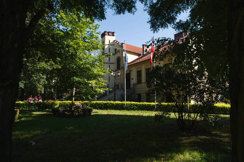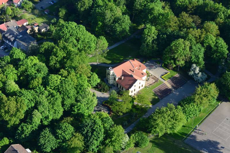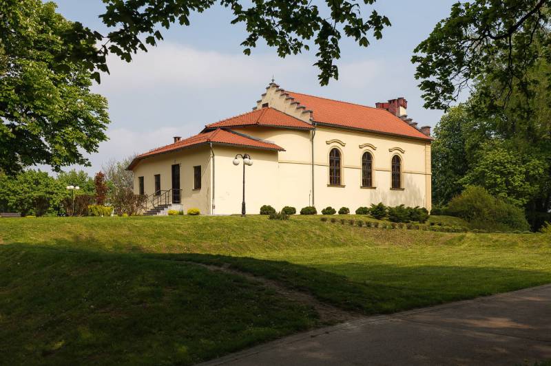 Pałac Sokół, który dzisiaj stoi na obszarze Parku Miejskiego (założonego w 1982 roku), powstał na miejscu wcześniejszego, warownego zamku, wzniesionego prawdopodobnie jeszcze przez Kazimierza III Wielkiego lub zaraz po jego śmierci. Zbudowano go na sztucznym nasypie, w miejscu, gdzie wcześniej najprawdopodobniej znajdowała się drewniana budowla. Uległ zniszczeniu w okresie najazdu Szwedów na miasto. Wraz z resztkami murów został rozebrany, a materiał z rozbiórki wykorzystano do budowy kamienic przy rynku i innych obiektów gospodarczych. Pod koniec XIX wieku teren wraz z ruinami przekazano powstałemu Towarzystwu Gimnastycznemu „Sokół”, (stąd dzisiejsza nazwa), które zainicjowało budowę pałacyku (1904-1906) według projektu Wincentego Koczarkiewicza. Po zakończeniu prac budowlanych obiekt stał się centrum życia mieszkańców Skawiny i drużyny sokolej. Skawińscy sokoli nie pozostali bezczynni w obliczu I wojny światowej. 26 sierpnia 1914 r., spod budynku „Sokoła” wyruszyła do Krakowa 25-osobowa drużyna ochotników pod dowództwem Alfreda Bieniasza, by zasilić legiony Józefa Piłsudskiego. W dwudziestoleciu międzywojennym działały tutaj teatr i kino, a w pobliżu funkcjonowała strzelnica. Po wojnie budynek był siedzibą klubu sportowego „Skawinka”, zaś po remoncie w latach 80. XX w. przeznaczono go na siedzibę Miejskiego Domu Kultury, z którego wykształciło się w 1992 r. Centrum Kultury i Sportu. Pałacyk jest ważnym miejscem na mapie kulturalnych działań podejmowanych na terenie Skawiny.