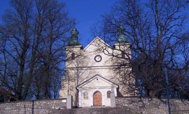 Gotycka, datowana na XV w. świątynia, była wzmiankowana przez Jana Długosza, a jej powstanie należy łączyć z benedyktynami z Tyńca. Kościół spłonął wraz z większą częścią wsi w okresie potopu szwedzkiego. Po odbudowie świątynia była ponownie konsekrowana w 1680 r. Pozostałością tamtej budowli jest niewielkie (niższe od późniejszego korpusu) oszkarpowane prezbiterium (sprzed 1440 r.). Obecna budowla pochodzi z końca XVIII w. Jest to budowla murowana, otynkowana, trójnawowa, o nawach równej wysokości (tzw. hala), nakryta sklepieniem kolebkowym z lunetami. Podczas XX-wiecznej rozbudowy dodano fasadę z dwiema wieżami, nakrytymi hełmami o barokowych cechach. Kościół otacza mur z czterema kaplicami. Wyposażenie wnętrza jest w większości barokowe. Zobaczyć należy: Krucyfiks z XVIII w., obraz Matki Boskiej z Dzieciątkiem w metalowych sukienkach z XVII w., obraz św. Izydora pędzla Michała Stachowicza, marmurową chrzcielnicę z XVII w., epitafium ks. Wawrzyńca Kamerera.
