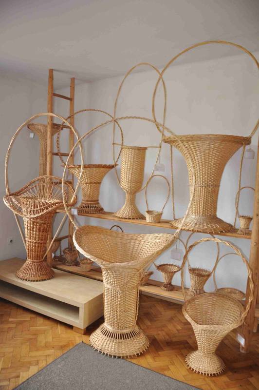 W budynku OSP w Wołowicach mieści się stała wystawa prac wikliniarskich.