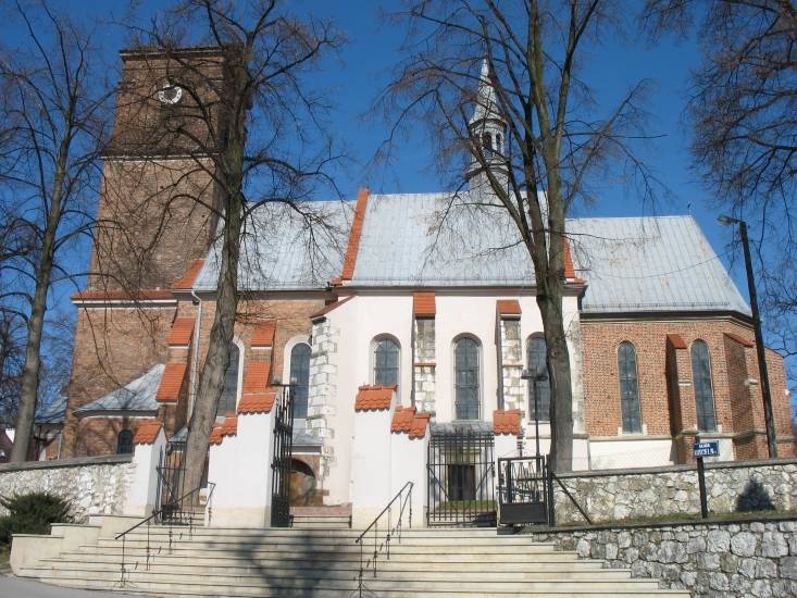 Można tu zobaczyć cenne polichromie gotyckich ścian, prezbiterium z lat 1410- 1420, które odkryto podczas renowacji kościoła w latach 60 XX wieku. Na polichromii widać m.in. sceny figuralne Ukrzyżowania i św. Józefa z Dzieciątkiem Jezus oraz elementy ornamentalne, w tym również herb Leszczyc fundatora świątyni Piotra Wysza. W całym kościele widoczny jest motyw ceglany z użyciem kamienia. Obiekt dostępny jest dla zwiedzających po uprzednim telefonicznym zgłoszeniu 285 11 87