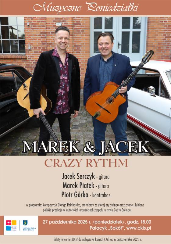 4. Muzyczny Poniedziałek - Marek&Jacek Crazy Rythm – 27 października, godz. 18.00, Pałacyk Sokół