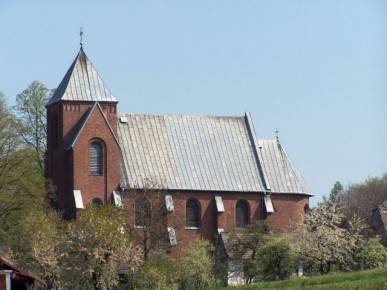 Kościół wraz z ogrodzeniem powstał w latach 1924-1928. Neogotycki, murowany, został wybudowany na miejscu dawnej kaplicy z XVIII wieku. Zespół tworzy również plebania murowana z początku XX wieku, obiekty gospodarcze z XVIII-XIX wieku, w tym lamus murowany z XVII-XVIII wieku. Ważną częścią zespołu są pozostałości założenia parkowego oraz ogrodu "włoskiego", na uwagę zasługuje również siedem kilkusetletnich lip.