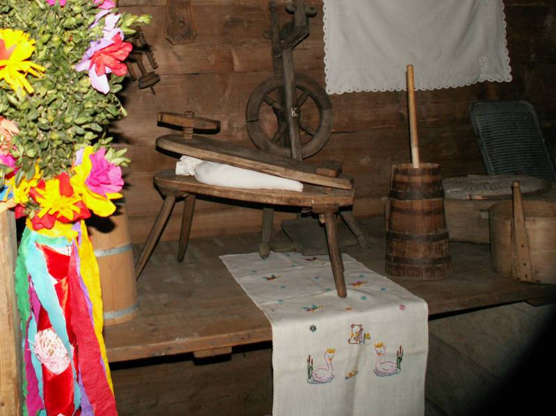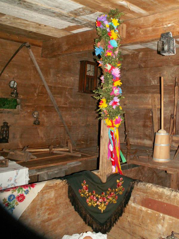 Izba znajduje się w pobliżu szlaku zabytków kultury drewnianej Małopolski kościoła pod wezwaniem NNMP z XVI w. Izba powstała w 2010 r. staraniem Stowarzyszenia Przyjaciół Ziemi Krzęcińskiej. W drewnianym spichlerzu z II poł. XIX w. należącym do zespołu zabudowań plebańskich z zachowaniem oryginalnych sąsieków na zboże zgromadzono eksponaty ilustrujące dawne życie chłopskie, przedmioty używane w domu, w polu i w obejściu oraz eksponaty jak najbardziej współczesne: dożynkowe wieńce i chleby okolicznościowe, z których do tej pory słynie Krzęcin. Najcenniejszym eksponatem jest sztandar Stowarzyszenia Młodzieży Polskiej przywieziony podczas okupacji do Krzęcina przez uciekinierów z poznańskiego zaprzyjaźnionych z rodziną Hallerów.