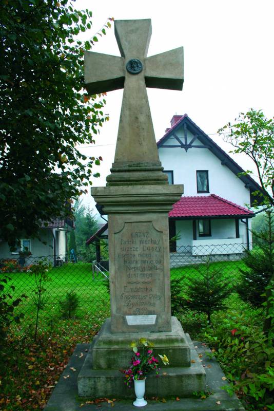Kapliczka słupowa z kamiennym krzyżem w Gołuchowicach