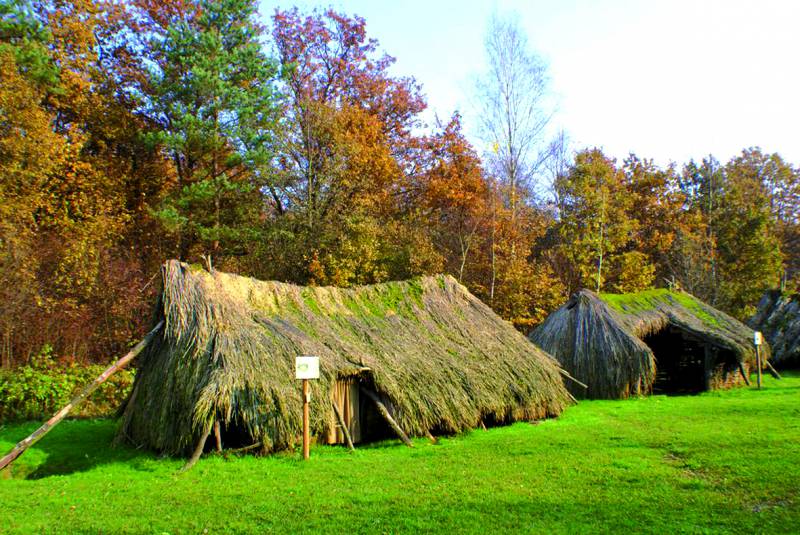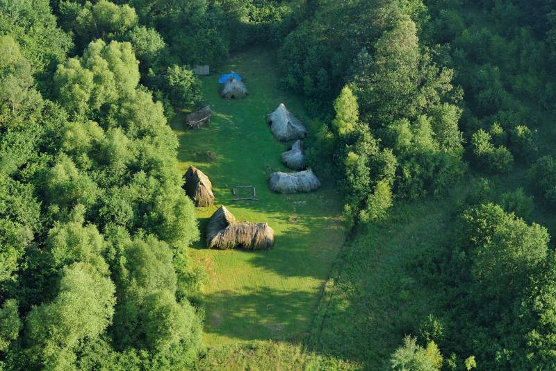 The ancient village was built using bronze axes and knives, flint sickles and saws, and tools made from bone, horn and wood. Construction materials were typical of that era (tree trunks, pliant branches, bast, clay, wicker and turf). No modern-day material (nails, wire or plastic foil) was used to join construction elements.