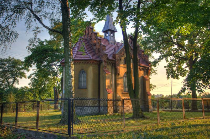 The manorial complex consisting of the manor house, the neo-Gothic chapel from the early 20th century, a house for four peasant families (czworak), the stable and the park. The manor was built in 1905 and remodelled after 1945. Once it was the property of the Raczyński, Deras, and Doboszyński families.